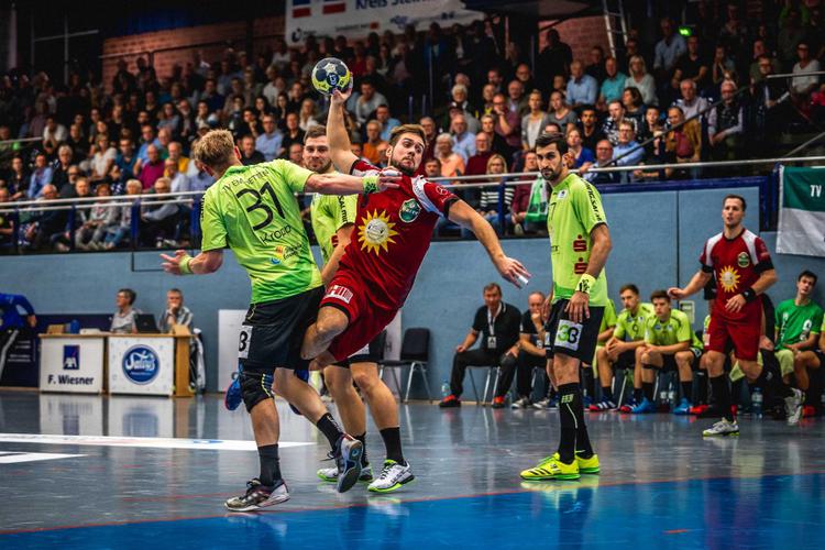 In der intensiven Partie ging es direkt zur Sache. Beide Mannschaften schenkten sich nichts und schnell fielen die ersten Tore. Bereits mach sechs Spielminuten warf der TuS eine 2-Tore-Führung heraus (3:5). Die Zuschauer erlebten einen hellwachen TVE, der innerhalb von 60 Sekunden durch die Tore von Božovic, Franke und Holzner, das 8:6 erzielten. Es waren erst zehn Minuten auf der Spieluhr. Viele Einzelaktionen der starken Gästespieler hielten Lübbecke im Spiel und über 10:10 nach 14 Minuten und 14:14 nach 22 Spielminuten, setzte der TVE zum Schlussspurt in Halbzeit eins an. Angeführt von einem bärenstarken Merten Krings setzten sich die Emsdettener bis zum Pausenpfiff mit drei Toren ab und gingen mit 19:16 in die Kabine.